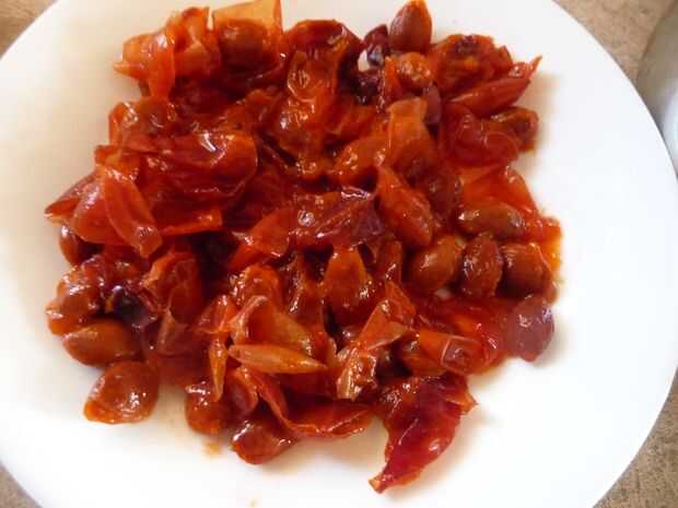 - Enfriar a temperatura ambiente. Desagüe o deseche el agua. (Será de los hollejos de ciruela roja)