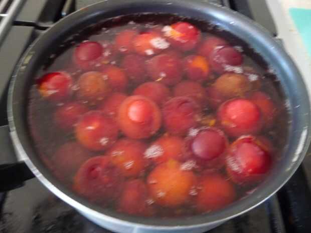 - Poner el agua a hervir. Hervir unos minutos hasta que la ráfaga de ciruelas de la piel. Cubra y retire del fuego.