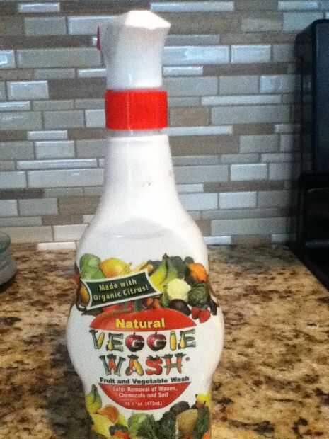 Rociar las fresas con spray de limpieza de verduras y deje que enjuagar.