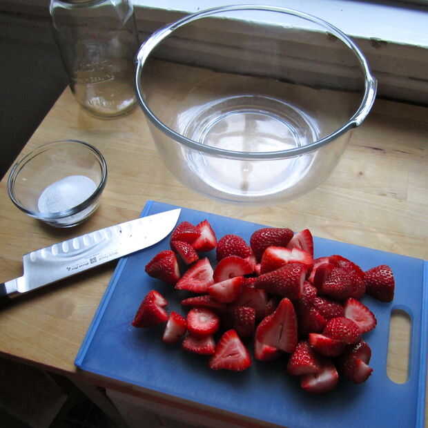 Mezcle el azúcar y deje las fresas y el azúcar durante al menos diez minutos.