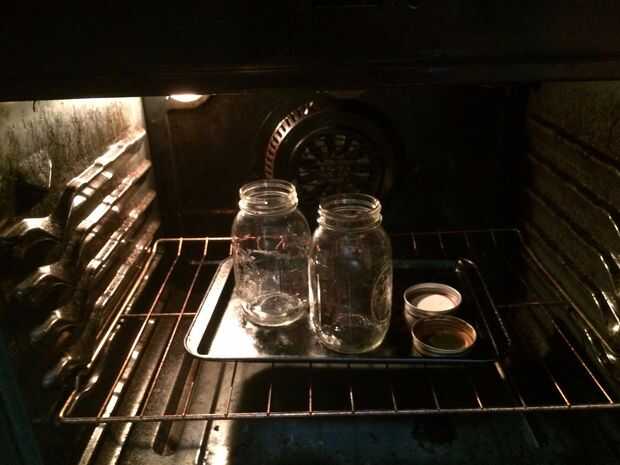 3) gire el horno a 250 grados fahrenheit y el lavado frascos y las tapas en una placa para horno en el horno.