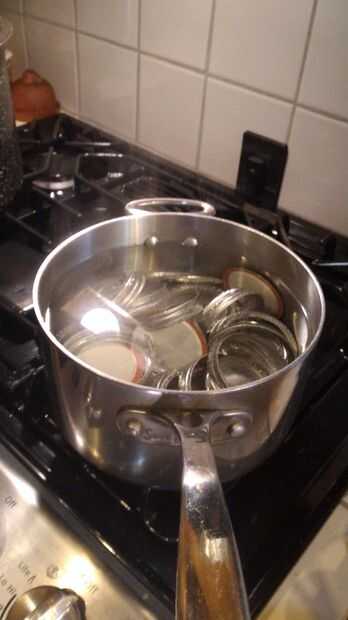 Poner conservera las tapas y los bordes en agua hirviendo a la temperatura.