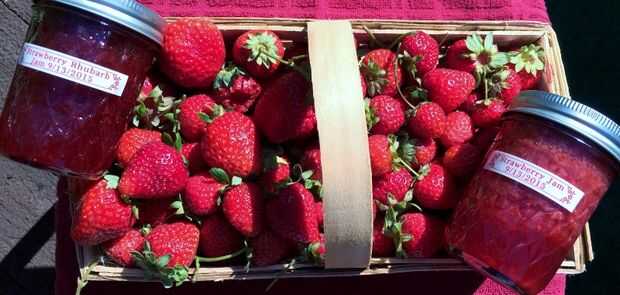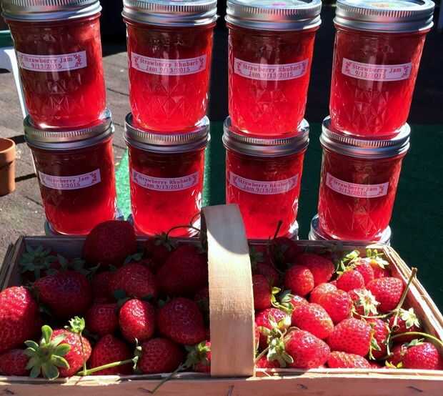El ruibarbo con las fresas y el azúcar de cocina hace que sea agradable y suave por lo que es fácil de untar, algunos jugo de limón aclara los sabores y fresas cultivadas localmente tienen sabor increíble, un poco de mantequilla para reducir la espuma y te tiene a ti mismo la mejor mermelada de ruibarbo fresas.