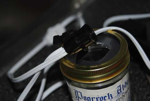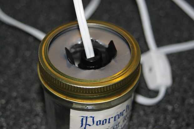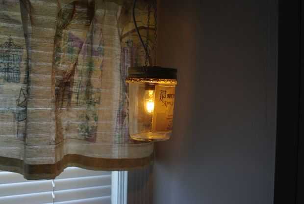 Se necesita un fuerte gancho para colgar en el techo o hacia fuera de la pared como un candelabro como se desee. Sólo estoy usando un gancho de taza grande para esta luz, pero sugeriría una luz o planta de gancho si se utiliza un frasco más grande.