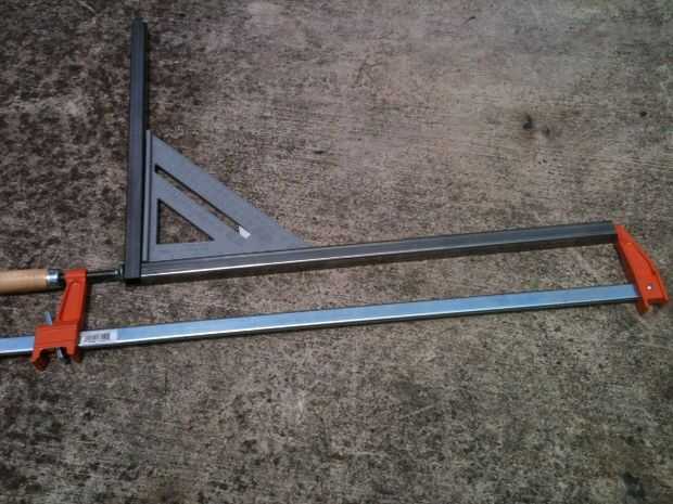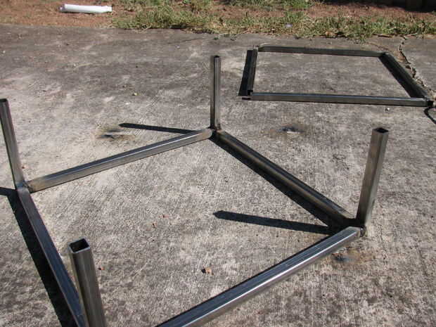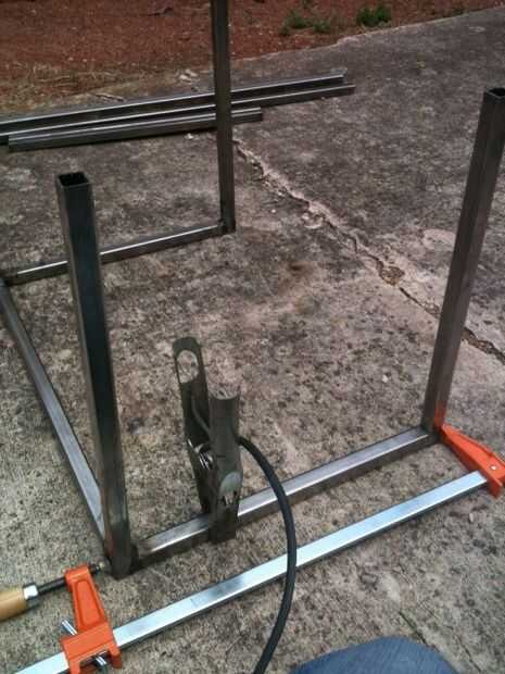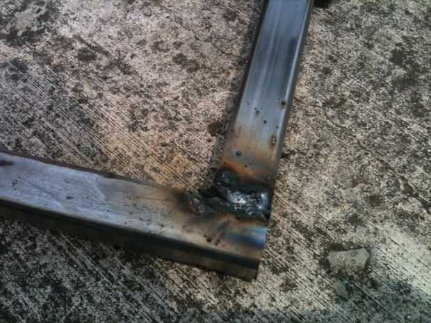 utilicé un soldador de arco para soldar las piezas del marco, a partir de la tabla más pequeña primero. Usé un ángulo de metal, un nivel y abrazaderas para asegurarse de que todos los ángulos son de 90 grados. Una vez que terminé con la soldadura que utiliza una amoladora para limpiar las esquinas soldadas con autógena y suavizar cualquier escoria.