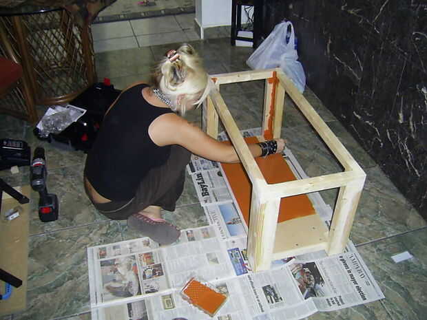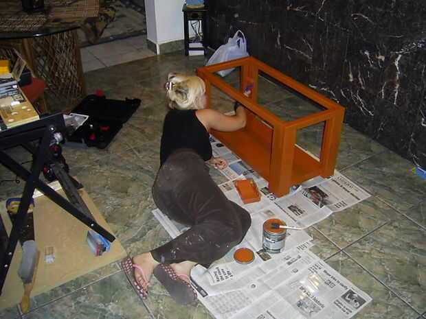 Ok esta parte no necesita ningún detalle verdadero, sólo asegúrese de obtener todas las esquinas con una brocha de esquina para que ninguna madera muestra a través de.