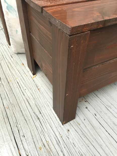 Para comenzar, corte 4, tablas de cedro de 16 pulgadas. Luego corte los 4 tableros en un inglete 45 grados. Ahora tiene 8 piezas de 16 pulgadas de altura. Pegue los bordes angulares, por lo que terminan con 4 patas. (opcional) Fortalecer al avellanado tornillos un par en cada pata y llenar los agujeros con masilla de madera. Vea la foto de una pierna.