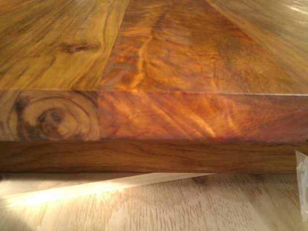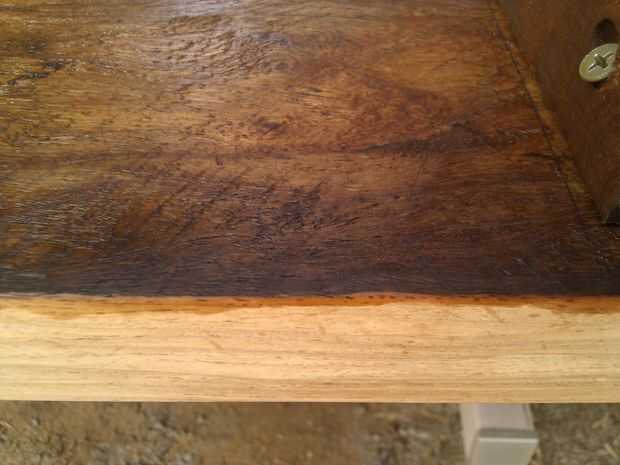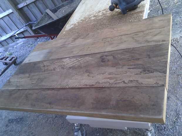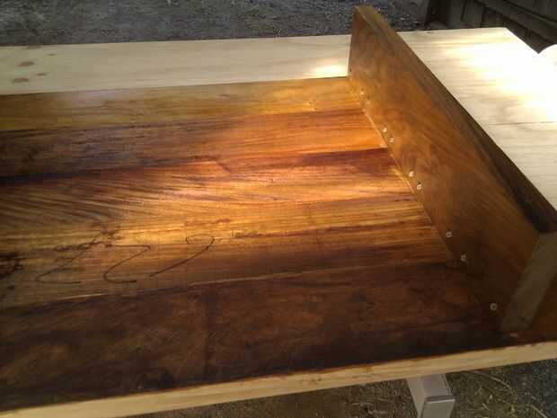 Al principio estábamos con el objetivo de hacer la tabla ser viejo y degradado y se puede ver en algunas de las fotos iniciales cuando estaba disponiendo de la madera para elaborar el mejor diseño, que parecía bastante envejecida y colorido. Sin embargo, como comencé a cepillar el interior los bordes de la preparación para unirse a la madera, me gusto mucho los colores expuestos y decidió terminarlo bien y encuadrada y proteger con aceite.