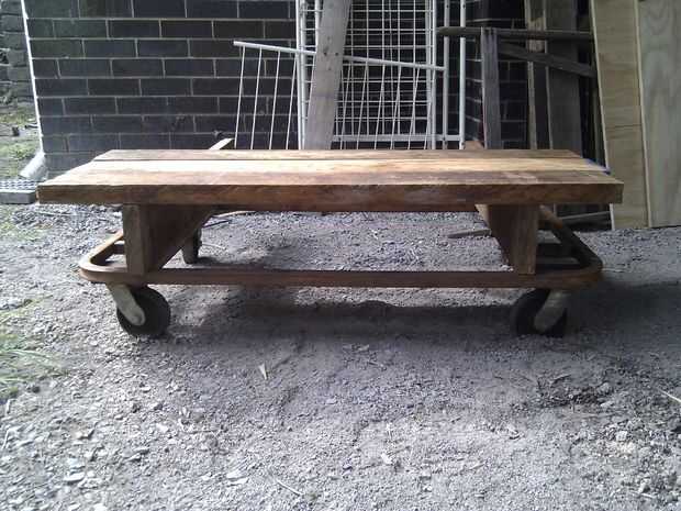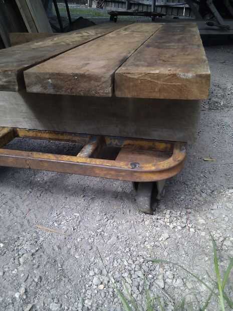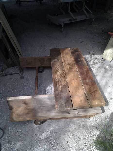 12. mover la mesa y carro a la zona al aire libre en piezas separadas (demasiado pesados o demasiado muchos obstáculos para montar y luego pasar!)