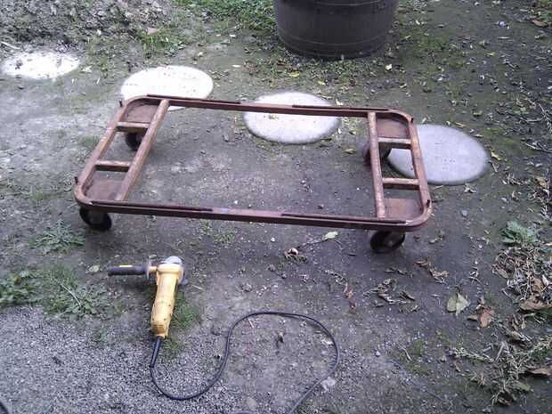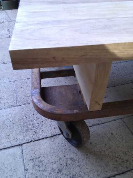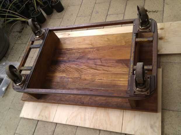 13. une el carro a la base de la tabla (se basaba en planchas de madera de cortes que tuve para no dañar la parte superior o bordes en el pavimento)