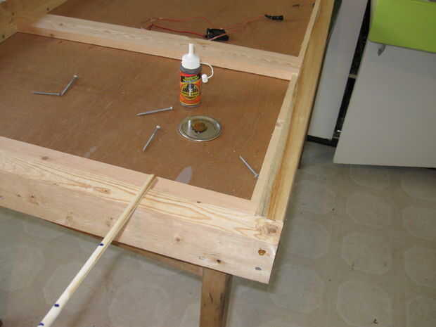 Una vez que el marco esté seco volver a medir la abertura y corte el tablero inferior para ajustar agradable y cómodo. Cuando sabes cabe, quitar un aplique pegamento gorila a todos los bordes y volver a montar la Junta. Utilicé tornillos drywall para trabarlo en su lugar mientras el pegamento seca. Los tornillos pueden quitar o dejar en su lugar que no sea visto. Quité sólo en caso de que pudieran rayar lo que iba a poner el panel en después.