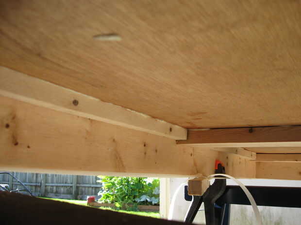Mi hice un poco fuera de lugar como lo equipado también con los miembros estructurales al mismo tiempo que construye la estructura básica. Esto hizo la configuración un poco más difícil, ahora mejor para construir el marco básico primero. Entonces elegí qué lado sería la parte inferior y routered hacia fuera un borde en el interior del marco a aceptar el panel inferior. Esto realmente no es necesario si usted elige utilizar listones en el interior en lugar de otro. Usé algunos paneles de madera sobrante que arrancó de una renovación de la casa. Si usa madera más fuerte usted podría conseguir lejos con no añadir a los miembros de la estructura en los laterales y en el medio, pero que soy barato, por lo que necesitaba para el revestimiento de madera endeble. Os adjunto a los miembros de la estructura del mismo modo que el marco. Perfore, pegamento del gorila, tornillo, esperar a seco, quite los tornillos y diámetro de los orificios de 3/8 e Inserte el pasador de 3/8 cubierta de pegamento. UF gestión de oraciones!