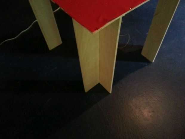 Porque pensamos que tendría las piernas en el camino de armar el mecanismo de baldosas, ponemos las piernas en último en las esquinas de la mesa.
