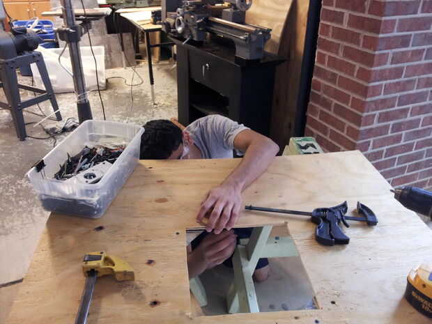 Utilizamos el 36'' cuadrada madera pieza como nuestra mesa y montado todo sobre él.
