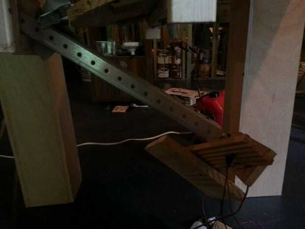 Hicimos nuestro mecanismo de orientación fuera del metal de hoja que nosotros podríamos cortar un pequeño agujero para el fotoresistor dar un vistazo a través de.