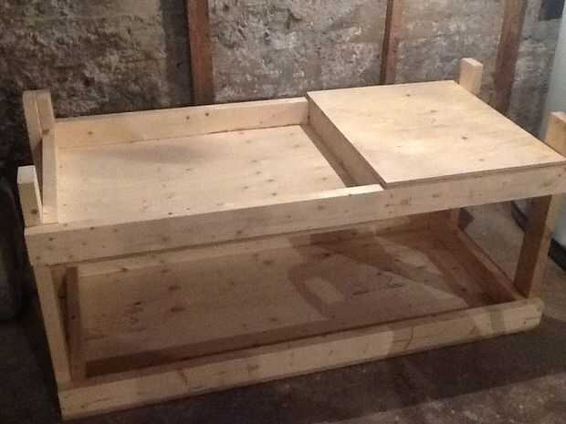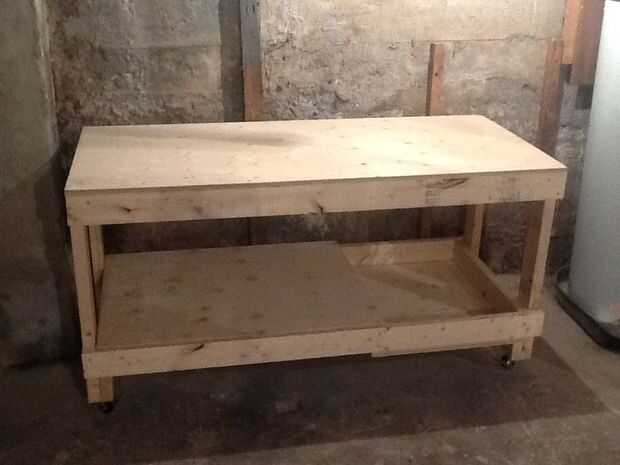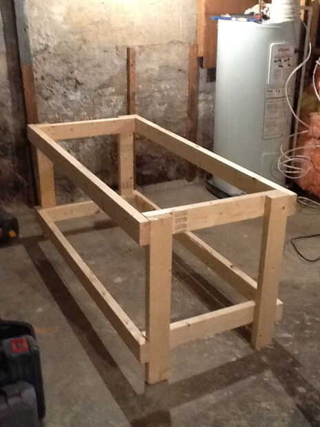 C) tornillo en la tapa de madera, estante inferior y cajón. Para el estante inferior, realmente tenía dos niveles en la plataforma estrictamente porque no me tenía dos longitud de madera contrachapada de 60" y no quiero comprar otra hoja sólo para eso.