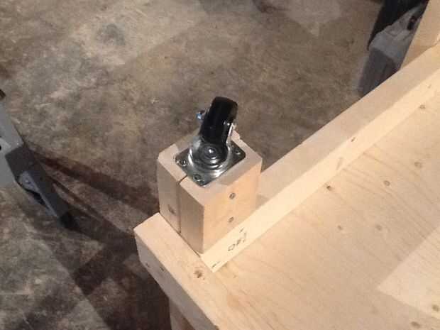 D) agregar chatarra 2 x 4 piezas en las patas de la mesa y colocar las ruedas de carro.