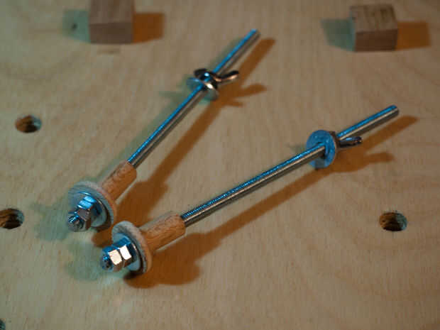 • Esta construcción puede ser utilizada como una pequeña prensa con abrazaderas o tornillos a través de los orificios de peg. Para esto hice dos tornillos de 6mm de material y utiliza casquillos de madera para que coincida con el diámetro del orificio de 12mm. Pegué los casquillos con epoxi en los tornillos.
