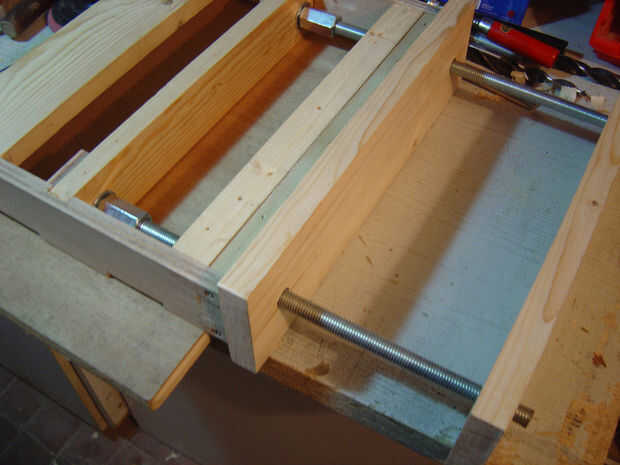 • Es importante hacer cumplir los agujeros a través del cual se pasarán los tornillos de la mordaza. Para ello utilicé tubo metal piezas como bujes.