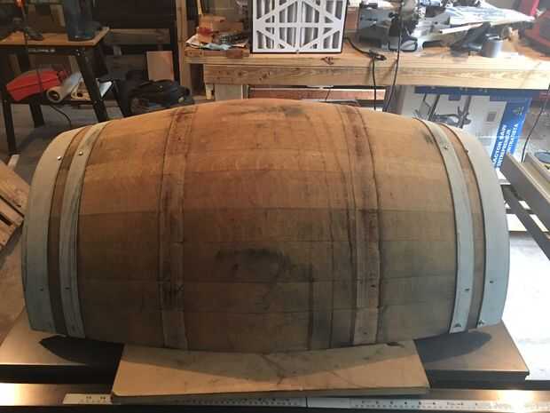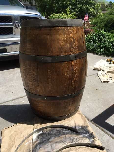 he comprado un barril de vino 25 galones en una venta de garaje por 10$.  Convirtió en un estante del vino iluminado.Paso 1: el barril Se muestra aquí es el barril como originalmente lo compré.  Realmente fue utilizado para hacer vino por su anterior