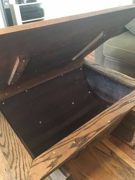 Esta mesa de café fue construido con duelas salvadas de barriles vino de para. Fue mi primer proyecto con los barriles vino de para, y fue un placer de hacer. Pasé por una fase de reutilización, de dar vida otra vez un materiales salvados, tardé bast