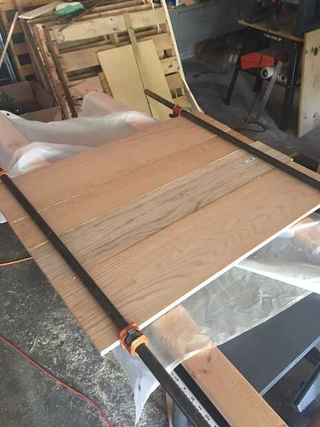 he utilizado paneles de roble tres cuartos pulgadas. Me pasó en estos queda más de un proyecto anterior, otra manera no hubiera gastado el dinero. Consiguen un poco caros. Pegado y luego utiliza una plantilla de agujero de bolsillo para garantizar desde la parte inferior. Entonces utilicé dos llaves de apoyo.
