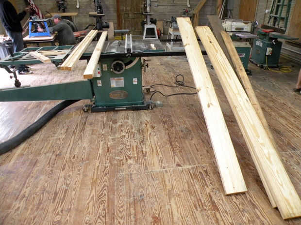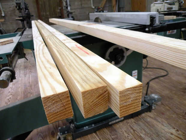 Uso una tabla vio rendir toda su madera en tiras de 1-1/2 "x 1-1/14". Cortar tiras de dos o tres en 1/2"-1" como las tiras de cubierta en el exterior de la tabla. Ayuda a enderezar la madera para cortar la placa para anchos de aproximadamente 1-5/8" en bruto y luego tome una hoja de cada lado con ensayar posterior. Esto obtiene las tablas tan uniforme como sea posible. Cuando se trabaja con generalmente baja calidad, grado de construcción o material de desecho, puede haber mucho de la inclinación y la inestabilidad.