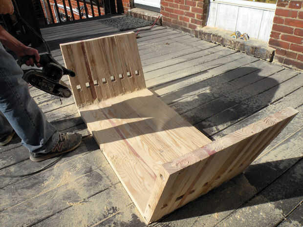 El infierno de la "U" con grano 60, de la arena y luego papel de lija y una lijadora de banda de grano 80 o 100, y 120. Utilice la lijadora de banda y arenas agresivos para limpiar las piezas entre sí, entonces más granos y una lijadora orbital para obtener suaves. Las piezas del estante se han quedado hasta ahora hacia fuera para que la parte inferior de la "U" se puede lijar. Usar protección adecuada de polvo y ruido al lijar.