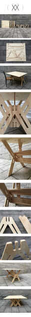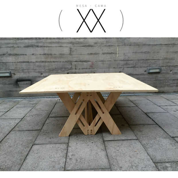 A partir de dos necesidades: comer y dormir, dentro de un espacio reducido en el interior de una casa rodante en remodelación, se diseña un mueble dinámico, se adapta a ambas situaciones. Inspirado en muebles plegables usan eficientemente el espacio, nace la Mesa Cama XX, un diseño simple y limpio que no usa pernos, si no solamente encajes de madera, haciéndolo liviano, fácil de transportar, armar y desarmar.