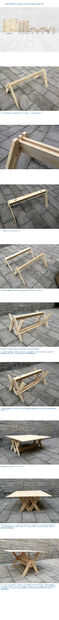 9. Para su uso como mesa: Subir la superficie de la mesa hasta el tope, con lo cual subirá toda la parte B hasta alcanzar los 70cm de alto, e insertar los dos tarugos de madera de 12mm de espesor en las piezas "c". Luego apretar las mariposas de los pernos en los rieles de los ambos lados.
