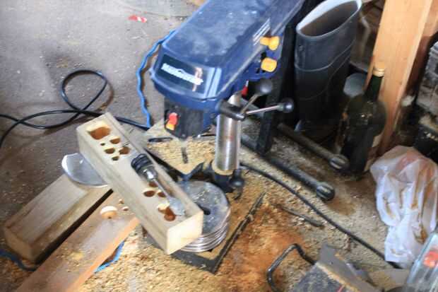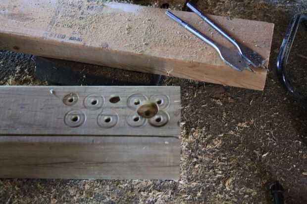 Asegúrese de que la broca no ir todo el camino a través de la Junta y garantizar el 4 x 4 hacia abajo. Primera vez no, y la parte superior de esa junta es maltratada. Sugeriría que sujetan la placa firmemente a la mesa del taladro. Me fijo la parte superior áspera con un cincel y había aplanado de la parte superior entera. Un carrito de segunda fue hecha al mismo tiempo, que se veía mejor.