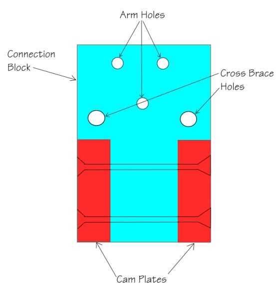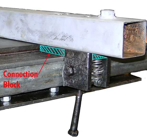 Descritas, rayado, luego señaló que el bloque de conexión en esta foto. El bloque sostiene el brazo hacia el puente de la Cruz y tiene las placas de cerradura de la leva también. Todo lo que se atornilla a este bloque de una manera u otra. ¿Tal vez debería llamar a esta parte el bloque de conexión de Tee? Porque si usted lo mira se de un poco se parece a la letra T.