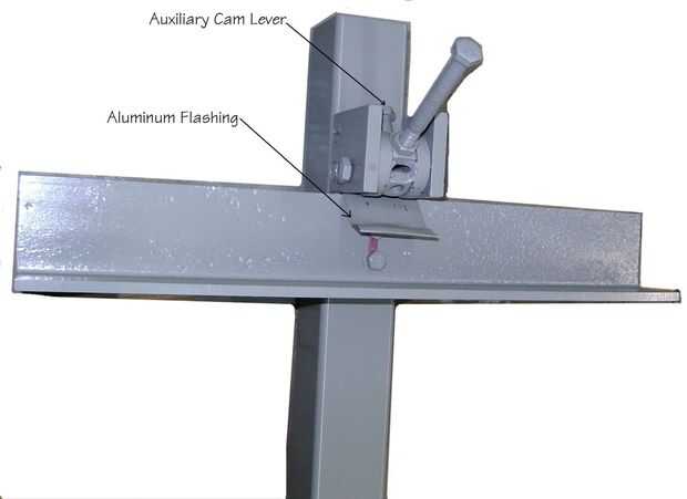 Al principio sólo quería ser capaz de arrancar abajo en el mango de la palanca de bloqueo y el bloqueo duro de valla en el lugar. Bueno, eso no sucedió. Afortunadamente lo hice mi Cam Lock me dio la opción de agregar una palanca auxiliar de empuje con un resorte. Ahora mi cam estaba empujando muy bien contra la viga pero todavía estaba recibiendo algunos resbalones con acero en acero. Por suerte tuve un poco de un boquete entre las placas de mi Cam y la llave de cruz que podía cuña de algunos tapajuntas de aluminio fina de la hoja entre. Ahora mi guía encierra firmemente y no se movió.