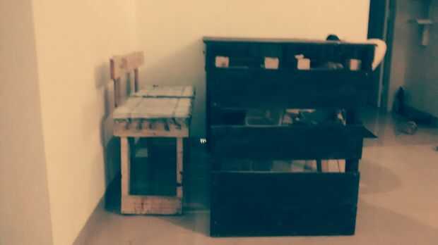 este es mi plataforma para macetas Banco.Miré básicamente ejemplos de diferentes estilos en Pinterest y comenzó entonces a buscar los palets.Todos juntos usé 5 pallets.La plataforma posterior fue el más largo y saqué unas 4 tablas como para hacer un