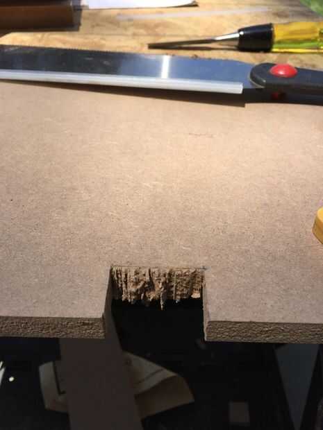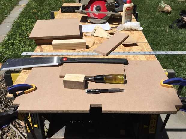 Construir una caja de MDF es bastante fácil, pero recuerda, esta caja necesita espacios para los abrelatas de la tapa quitados. Esto significó un fondo con algunas muescas grandes y cinco piezas de lado. Las dimensiones nominales de la caja son 22,5 "x 12" x 10 ".