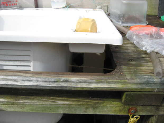 Tuve que cortar una sección de 8' 2 x 4 para que el fregadero se ajuste.