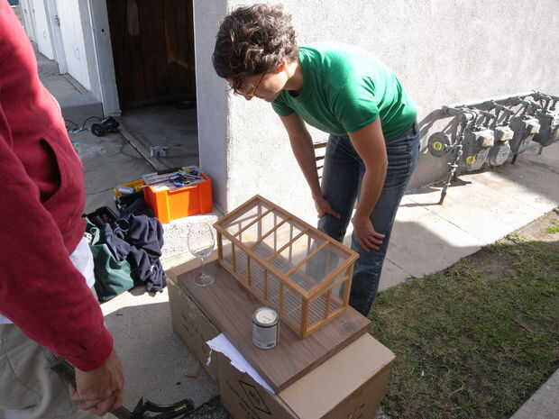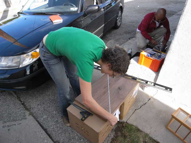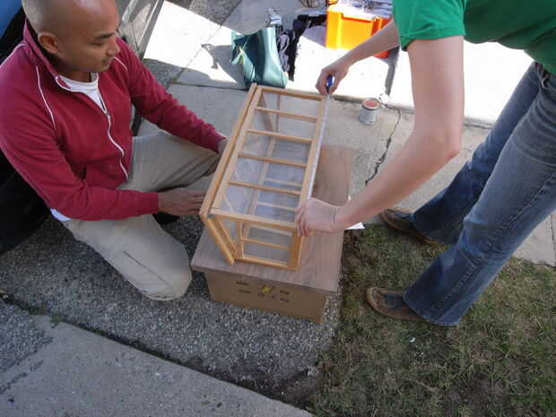 A continuación, marcar los lugares que vas a la derrota. Aquí estoy haciendo un espacio para el invernadero y dos áreas de tipo de montaña rusa de inserción el invernadero, milagrosamente, fue cuadrado, por lo que sólo podríamos rastrear su huella donde queríamos que (a 1 pulgada de los lados y la parte posterior). Los prácticos de costa nos también rastrear desde una lata de pegamento de goma o algo. Los posavasos son aproximadamente del tamaño de la taza posible más grande o la botella que alguien querría usar.