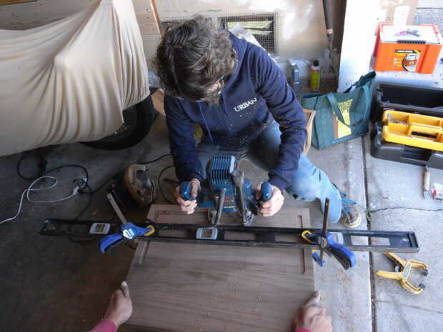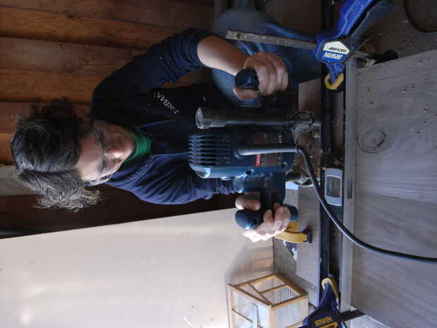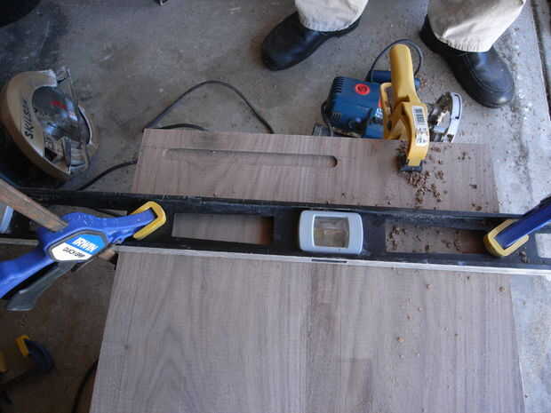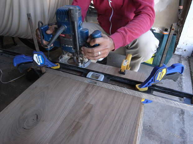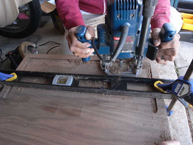 Después de encaminar el rectángulo, cincel las esquinas con algunas herramientas de carpintería. En realidad usé algunos cinceles para impresión de linóleo. Trabajan muy bien.