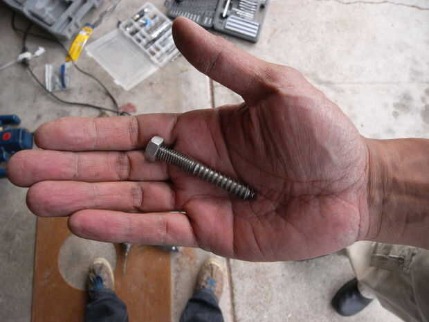 Cuando enrosque la pierna en la parte superior de la tabla, se endereza hacia fuera, incluso si los rellenos y los pernos no recta.