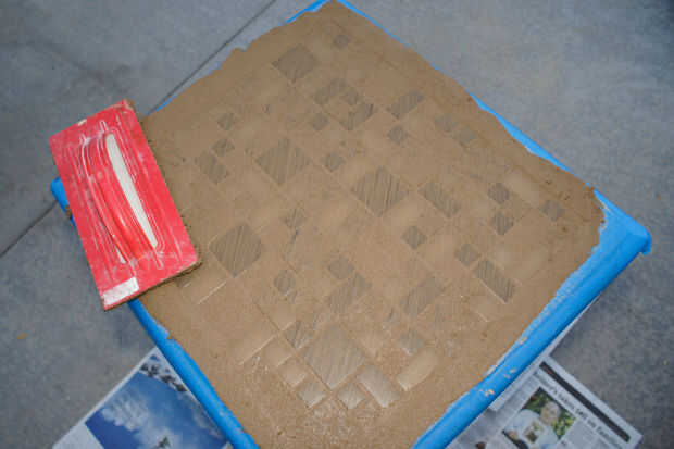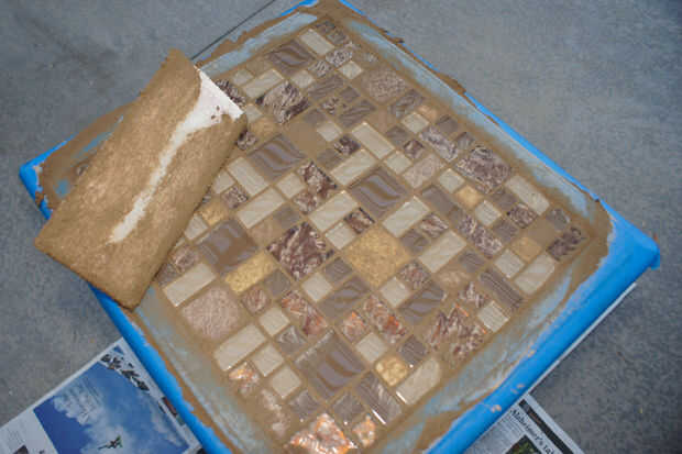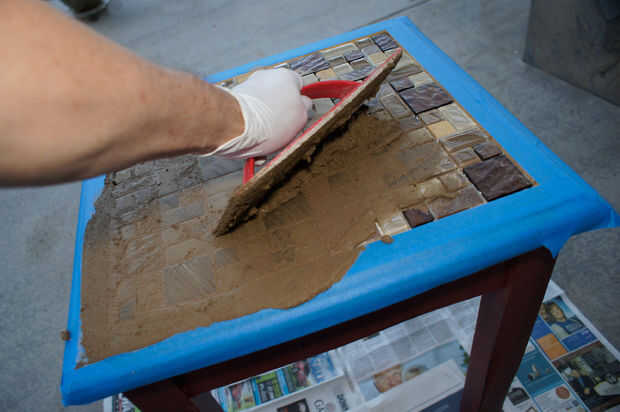 Mesa con mosaico de azulejos con incrustaciones de tapa de cristal (9 / 13 paso)