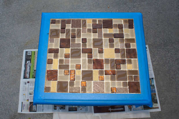 Mesa con mosaico de azulejos con incrustaciones de tapa de cristal (8 / 13 paso)
