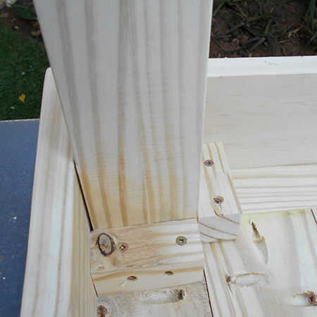 10. Asegúrese de que las piernas son exactamente la misma longitud medir dos veces y luego otra vez para una tabla que no tambalee. Asegure las patas con los pequeños bloques. Tornillo de los bloques en la parte inferior de la parte superior y a la pierna.