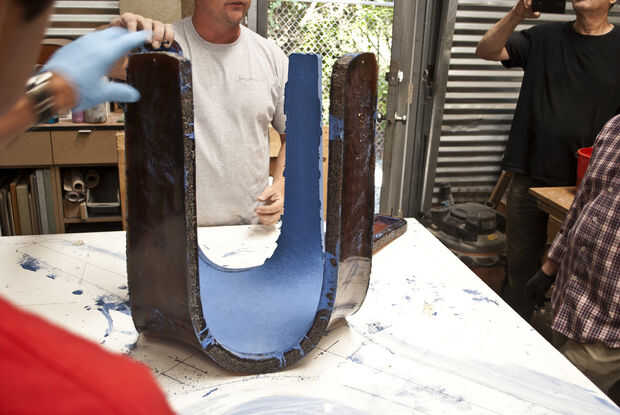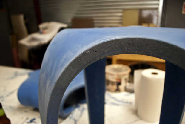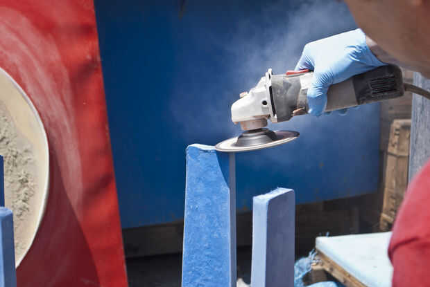 Romper hormigón sobrante de los bordes y la arena con pads de diamante mano. Si es necesario, moler la parte inferior de los pies para que se sienta la pieza plana.