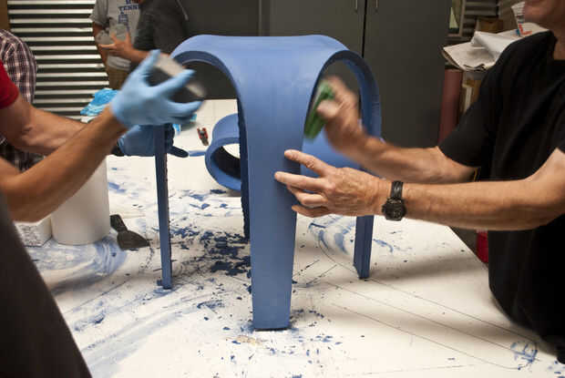 Primero retire los soportes, afloje el molde del caucho de cada pierna y dejarla caer a la mesa. La pieza se liberará fácilmente del molde de caucho.