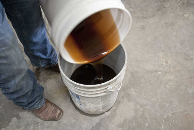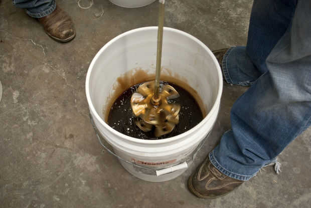 Vierta el caucho en el segundo balde de 5 galones y continuar licuando. Raspe abajo de que los lados y la parte inferior de la cubeta al igual que antes. Total tiempo de mezcla no debe tener más de 7 minutos.