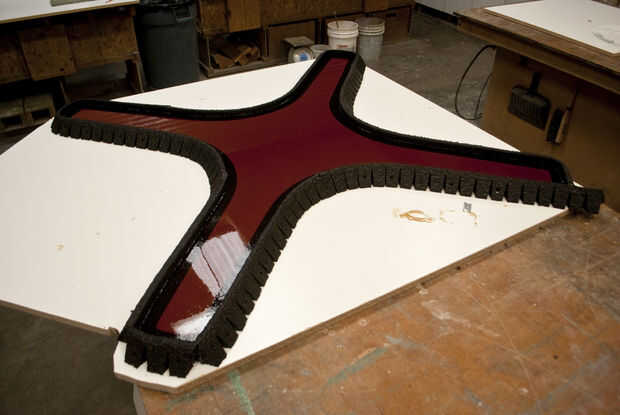 Cuando la goma está en la altura, puede rociar la parte de atrás con desmoldante para derribar las burbujas en la superficie.