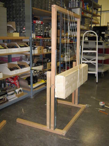 Os adjunto la caja de contrapreso utilizando la misma técnica como en el paso anterior (es decir, por no separar las diapositivas en dos trozos), excepto que la caja fuera de mi camino mientras atornillado en las correderas era un montón más difícil debido al peso extra. Como veis, tuve que jury-rig una cuna para mi contrapeso.