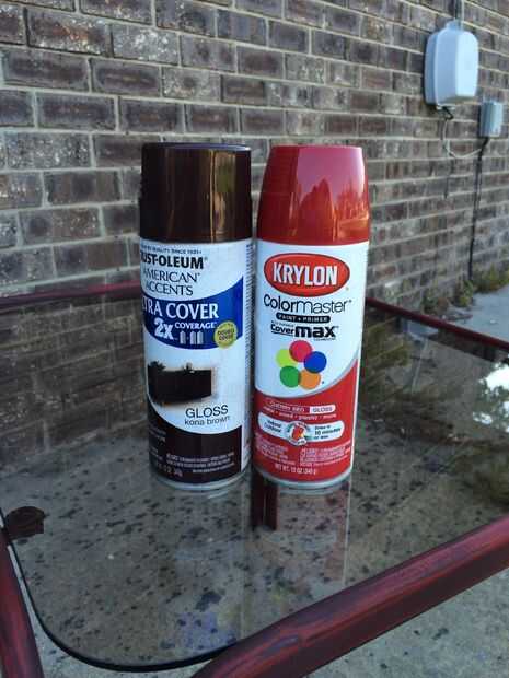 Mi mesa era ya de metal pintado negro usé para mi color principal Kona marrón brillo y lustre rojo cereza como mi color principal de la capa superior. Si quieres un look más ligero, recomiendo usar una ligera capa base y capa superior. Esto también hará que el color principal destacan un poco más.