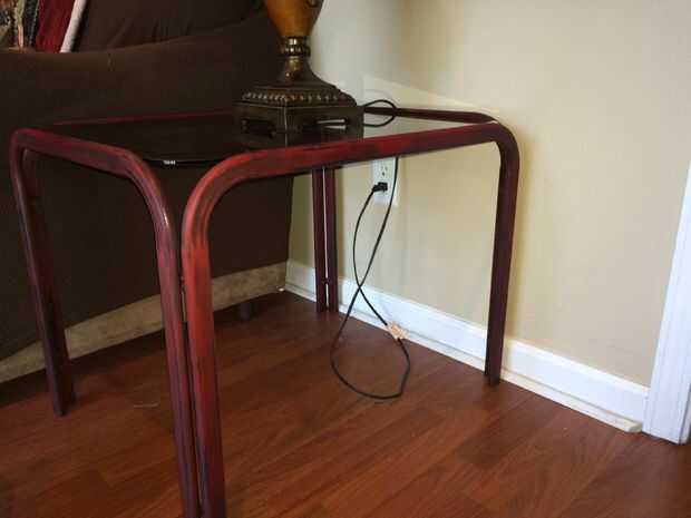 un cuatro patas vieja mesa, alguien dejó para chatarra y piezas de madera.Paso 1: Poner junto. Pegamento y tornillo piezas juntos y hacer un lijado.Paso 2: Pintar y deje secar. Los niños son muy felices como ellos participaron para crearlos.