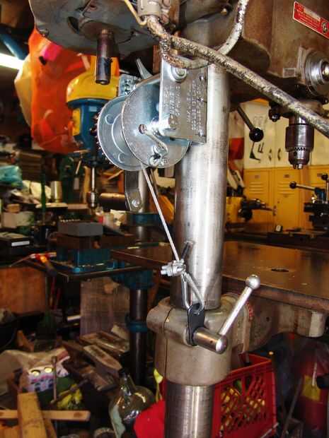 a la funcionalidad y seguridad conectado un cable de avión convenientemente fuerte y hardware el cabrestante y estaba seguro de todo apriete apropiadamente. Estoy muy satisfecho con el resultado de la adición de la mesa del taladro más grande e instalando el cabrestante para bajar subir y bajar con facilidad por lo que puedo hacer lo que realmente quiero hacer taladros en las cosas y apilado montones de cosas en el nuevo espacio de tabla encontrada. Para los que puede haber notado un cuadro o dos que parecía un poco diferente que puedo relacionar que el método que utiliza que unirá el cabrestante al polo primera vez implicó instalar cuatro pequeños tramos de cadena (2 arriba y 2 fondo) para el torno y la "envoltura" de las longitudes cortas de cadena alrededor del polo (eran a corto para conectar) y conectarlos con un tornillo que intentó reunir los extremos de la cadena y al hacerlo apretó entonces alrededor del poste del taladro. Efectivamente estaba tratando de hacer cadena pinzas pero la ejecución no era bonita ni funcional por lo que se reagruparon y perforado el montaje de cabrestante puntos directamente en el poste. Después de todo es mi taladro y puedo hacer lo quieras! Espero que encuentre que mi proyecto interesante y mi Instructable claro en su explicación de la misma... Baytownian